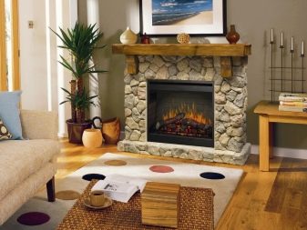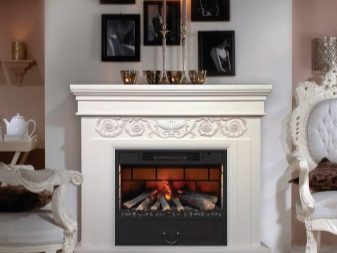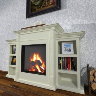 Най -често срещаните опции сред купувачите са модели, които симулират истински пламък. Горивната камера се основава на всички необходими декоративни компоненти: изкуствени дърва за огрев, въглища и камъчета. Всички тези детайли са осветени от лампи..