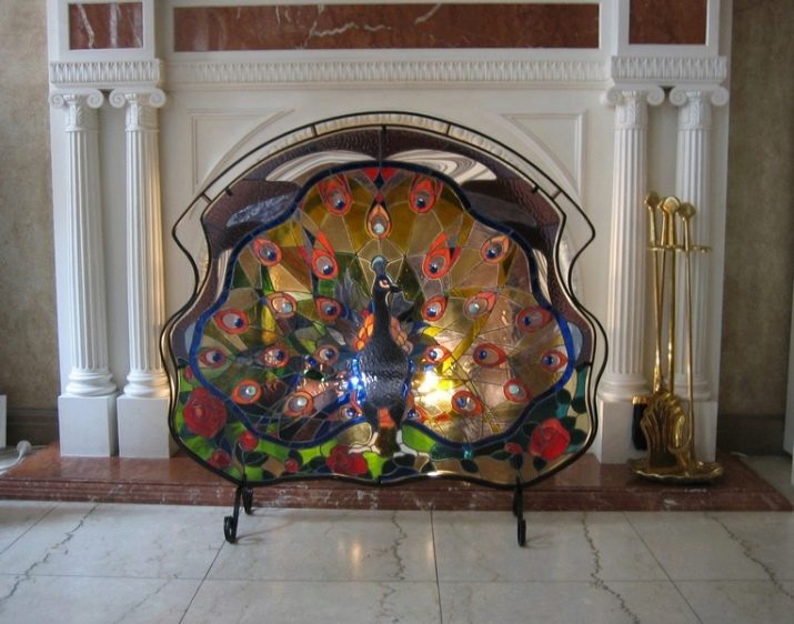 - Защитен щит. Те се използват за защита на помещенията от евентуално избягване на искри от отворената горивна камера. В допълнение към тази функция, тези аксесоари изпълняват и декоративни.