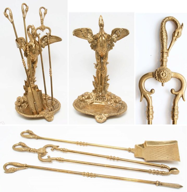 За собствениците на електрически камини ще бъде по -удобно да работят с месингови и медни уреди. Те служат повече като декорация, следователно са относително леки. Те са покрити само със сажди и прах, което означава, че могат лесно да се почистват. Когато използват такива материали за горивната камера в тухлена камина, собствениците веднага ще забележат, че те трябва да се почистват много често и този процес е доста трудоемък..