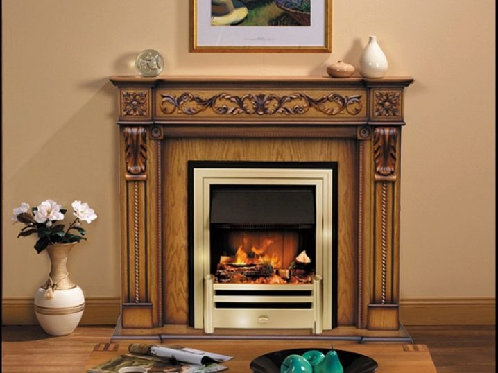 Дървеният портал е по -подходящ за затворени пространства, където идеално допълва антични мебели, антични картини и други дървени предмети. Ако пространството и интериорът позволяват, тогава е по -добре да изберете мраморна камина..