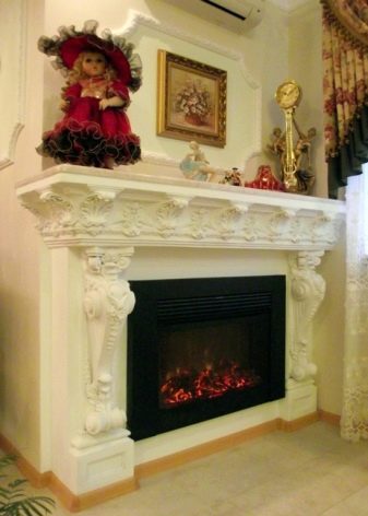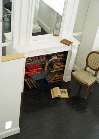 Оборудването на фалшива камина с камина ще служи като допълнително място за поставяне на статуи, рамкирани снимки, ковчежета, свещници и други дреболии, необходими за създаване на домашен уют.