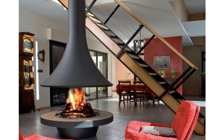 Съвременните дизайни на висулки са сравнително нов тип камина, която изисква допълнителни стойки за таван. Изборът на дизайн на камина директно зависи от вида на камината и професионализма на монтажника..