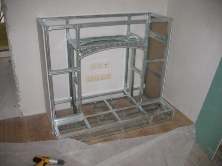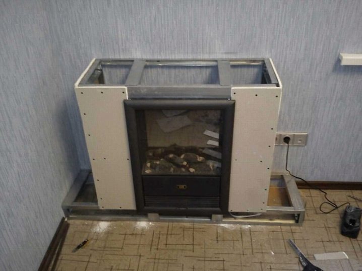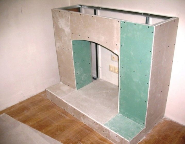 Сега обшиваме рамката с гипсокартон. Правим всичко внимателно, като помним, че отклонение от няколко милиметра може да изкриви цялата картина и да направи невъзможно запълването на портала в бъдеще. Ако се предполага, че облицовката на фалшивата камина е масивна и тежка, тогава е необходимо бъдещата камина да се обшие с два слоя гипсокартон. За облицовка на камина са подходящи листове от гипсокартон с дебелина най -малко 1,2 см.