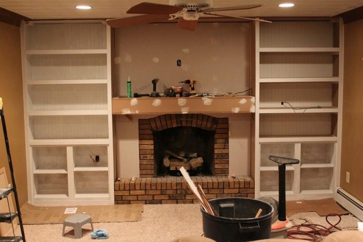 Ако не планирате да инсталирате фалшив комин и мислите да организирате рафт за снимки и фигурки отгоре, тогава трябва незабавно да укрепите страничните стелажи за надеждност на конструкцията. Вкарайте кабел с електричество в конструкцията, така че по -късно можете да поставите и свържете електрическа камина или LCD телевизор в портала. Можете да сглобите рамката отделно и едва след това да я инсталирате на стената. Тази опция е по -удобна, ако камината ви е близо до стена..