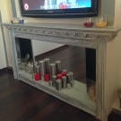 В горната част на камината може да се монтира декоративен рафт, в горивната камера да се монтира електрическа камина или телевизор.