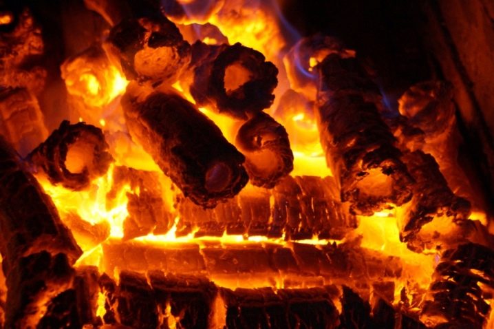 Обикновените дърва за огрев са много по -евтини, дори такива видове като елша и трепетлика, борова круша, ябълка. Масата на сухото вещество в брикетите е минимална. При разпалване те се поставят върху хартия, брезова кора. И двата материала светят еднакво добре. Времето за изгаряне на един брикет ще бъде много по -дълго от това на стандартен труп, но храстите, пъновете и корените ще дадат естетическата красота на пламъците..