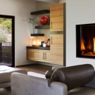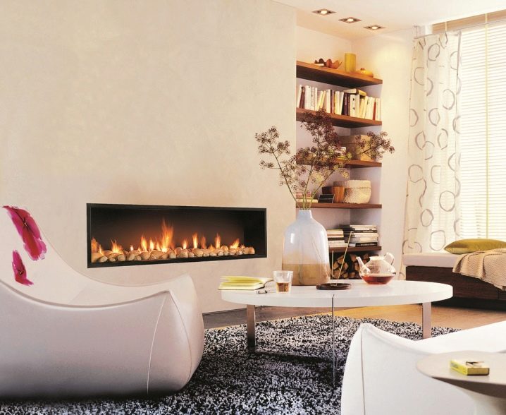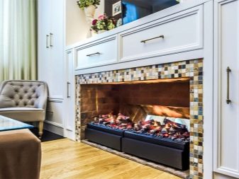 За малки помещения, за офиса на ръководителя или за интериора, направени в стила на „модерно“ или „високотехнологично“, вградената електрическа камина може да бъде отлично решение. Може да бъде вграден в стена или мебели.