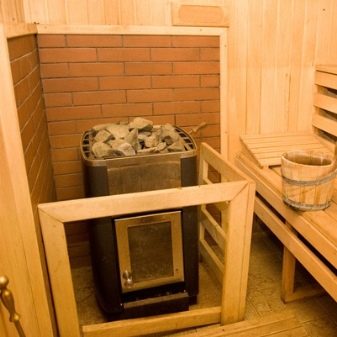 По правило в сауната електрическата камина е разположена на вратата, но малкият й размер позволява монтаж навсякъде. Около устройството е монтиран специален парапет като мярка за пожарна безопасност.
