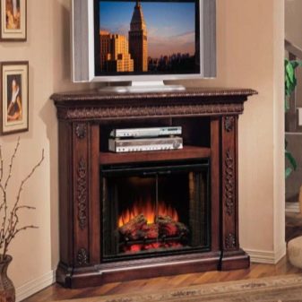 - има мултимедийни камини с медни тръби. В такива портали има специална стойка за телевизионна или мултимедийна система. Такова устройство се справя отлично с декоративната функция и играе ролята на стойка за играчи, телевизор, акустична система. Поради удобната височина на електрическата камина можете да поставите телевизор върху нея или да поставите устройството над нея.