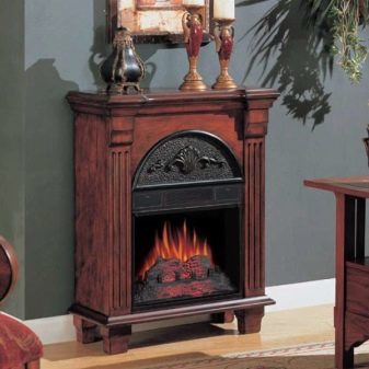 Съществува и категория компактни електрически камини, които нямат рамка. Те заемат много малко място и приличат на печка. Можете да поставите ваза или статуетка или друг предмет на такова устройство.