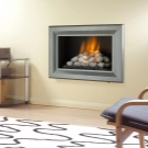 Повечето модели имат стъкло в предната част на камината, въпреки че има модели с извити щори и врати. Разликата между такива огнища е и в размера на дърва за огрев за тях – те са максимално близки до размера на естествените трупи. Те често имат светодиоди за още по -добра симулация на пожар. А някои модели също са оборудвани с изгорени естествени трупи на места..