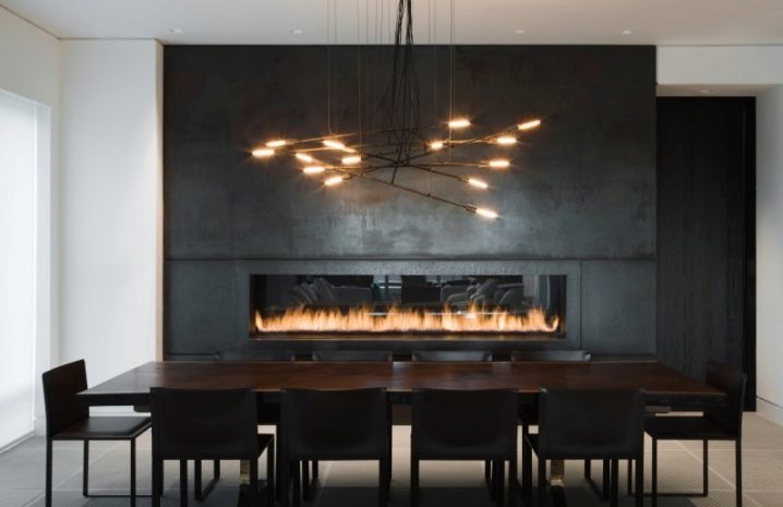 Такова голямо огнище може перфектно да се впише в интериора на просторна стая, която изисква допълнителни масивни елементи. Такива огнища са най-зрелищните и това е разбираемо, защото е просто невъзможно да не се обърне внимание на нестандартните им размери. Най -доброто електрическо огнище не може да се намери в апартамент с голяма площ или в просторна къща извън града..