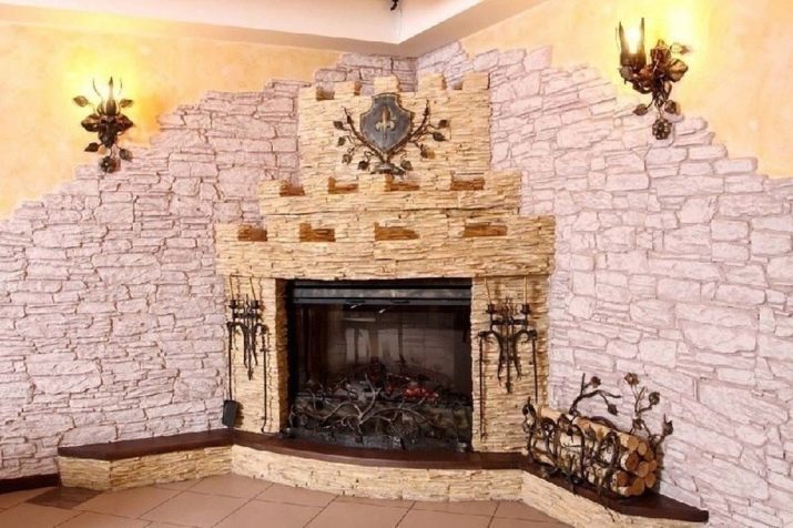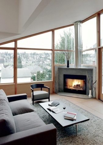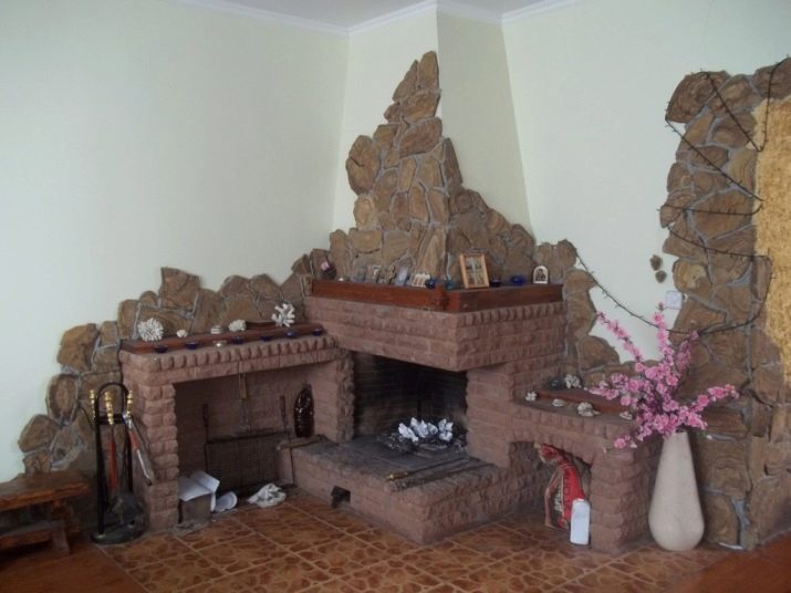 Също така, вътрешността на ъгловата камина може да бъде изпълнена с малки трупи. Естествено, не се препоръчва да ги палите, но външният вид на конструкцията с тях ще стане още по -добър.