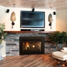 Най-лесният и евтин начин да украсите ъгловата камина е със самозалепващо фолио или тапет.. Тази опция също има своите недостатъци: камината изглежда незабележима и хартията може да се отлепи по всяко време.