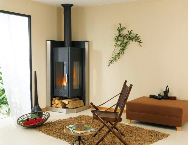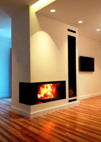Ъглова камина на дърва