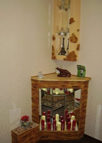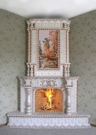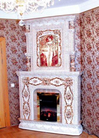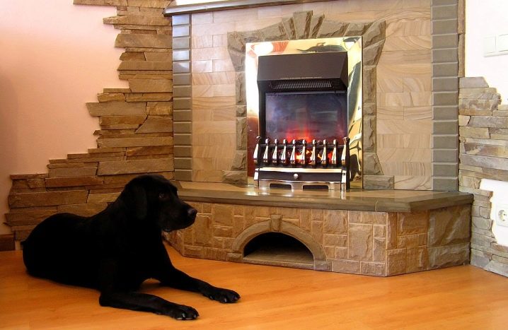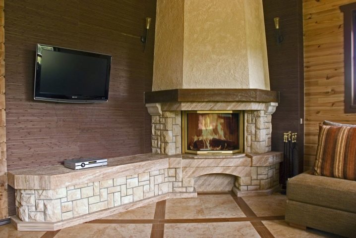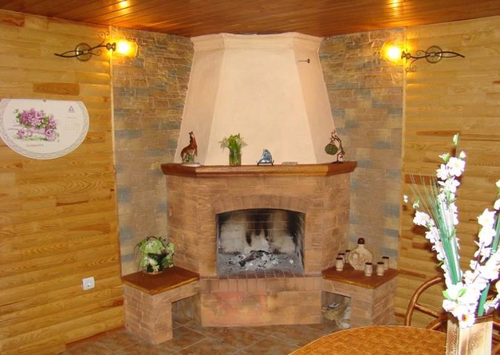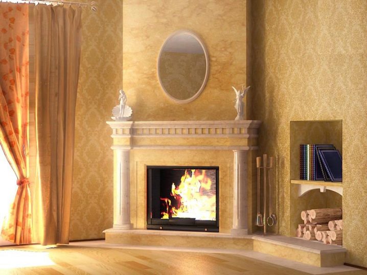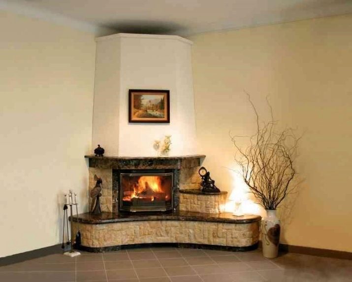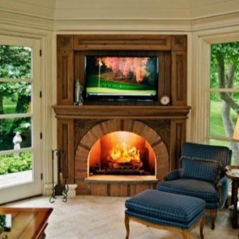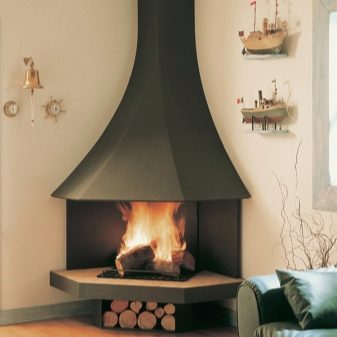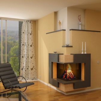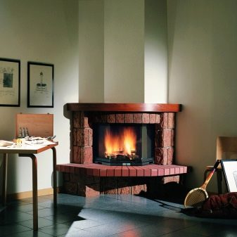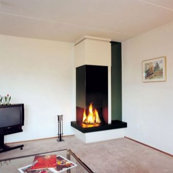 - ъгловата камина спестява свободно място в стаята. Порталът заема празен ъгъл, коминът също се намира в ъгъла на стаята, без да заема цялата стена;