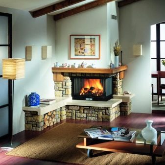 - този тип портал е в състояние да дава топлина на няколко съседни стаи едновременно в частна къща или в апартамент, тъй като и двете стени, с които камината влиза в контакт, ще бъдат отоплявани;