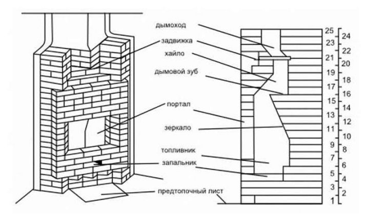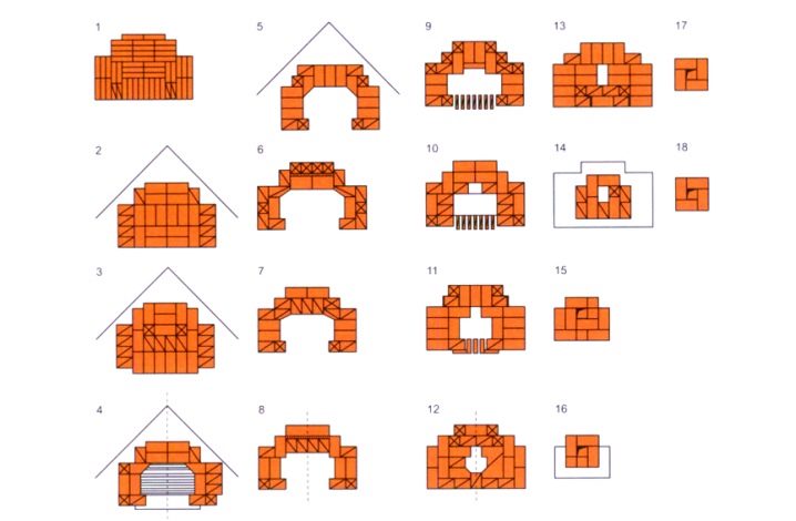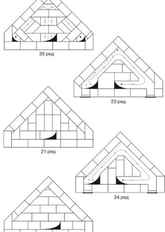 - Камината е разположена на 24-25 реда. След това можете да инсталирате решетка за печка и да изградите комин..