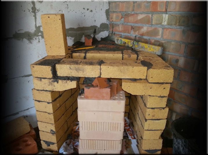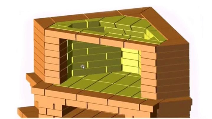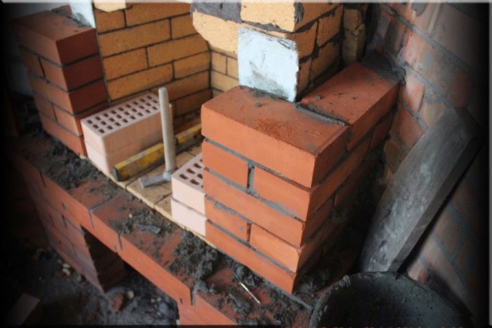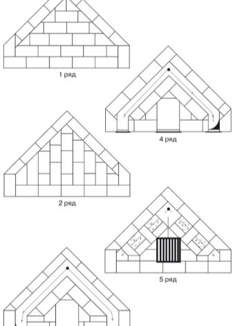 - Следващата тухлена зидария се състои от камина и решетка. Петият ред е придружен от малки издатини от тухли напред, така че е възможно да се образува припокриване.