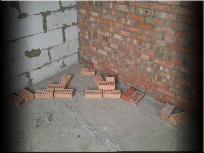 - По -нататъшни действия са запълване и изравняване на слоя от развалини в съотношение 1: 3: 5, където има цимент, пясък и натрошен камък. Имайте предвид, че ямата трябва да бъде разположена на разстояние в дебелината на тухлата по -ниско от нивото на пода.