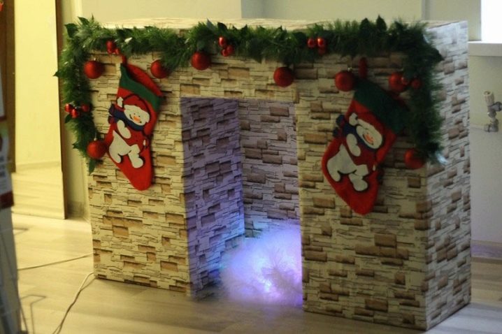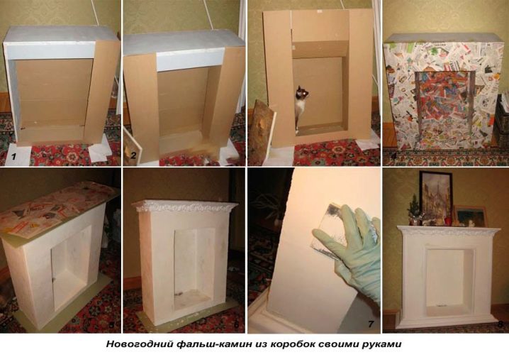 Най -лесният за използване материал е картон, от който огнището е направено най -бързо. Можете да използвате голяма кутия от квадратен телевизор или хладилник.