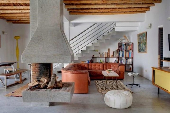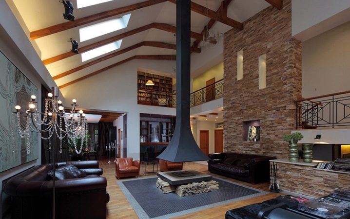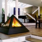 - Таванско помещение. Отворена камина или ъглови модели са подходящи за такъв интериор..