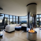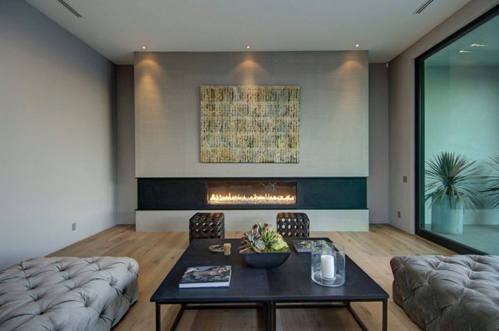 - Висока технология. В такъв интериор с минимализъм и студени тонове, тристранната или монтирана на стена камина изглежда страхотно.
