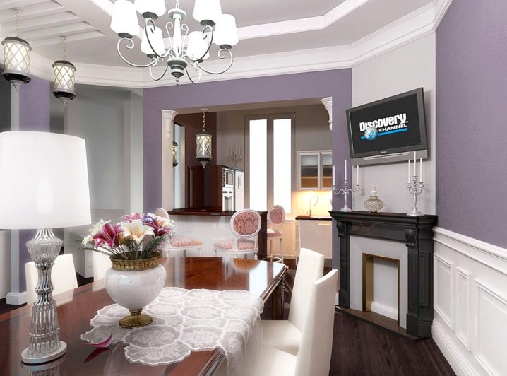 - Столова. Ако размерът на стаята позволява, тогава много съвременни дизайнери предлагат да се инсталира тристранна камина в трапезарията. Вграден модел камина е идеален за класически интериор..