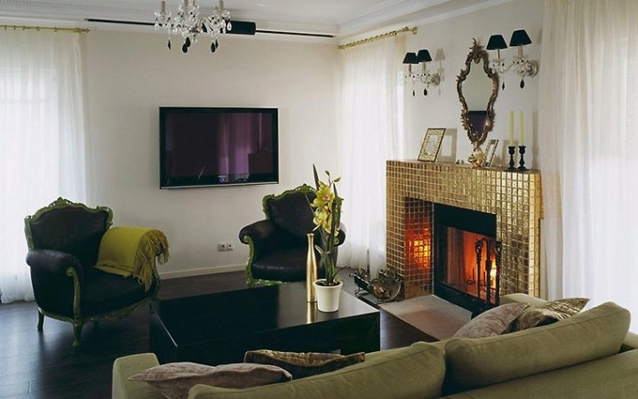 - Хол. Поставянето на камината може да бъде както в центъра на стаята, така и в ъгъла. Всичко зависи от идеята на дизайнера и размера на апартамента. Освен това всекидневната е място за събиране на цялото семейство..