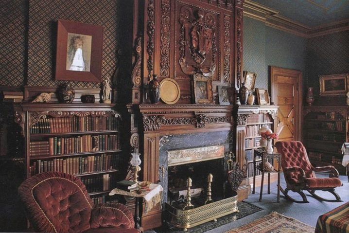 - Викториански. Антични и масивни мебели, сводести прозорци, наличието на таванни мазилки несъмнено отличават този стил от всички останали. Не можете да направите в такъв интериор без камина, украсена с естествени материали..
