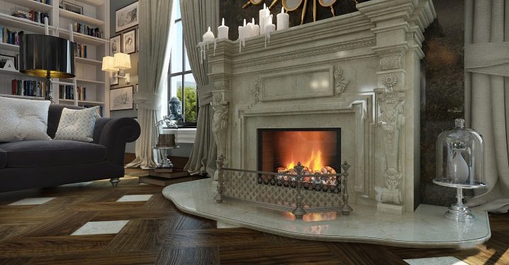 - Френски. Такава камина ще подчертае вкуса на собствениците си и ще се превърне в перла на всеки интериор. За изграждането на такава камина се използват естествени материали, например гранит и мрамор. Такава камина може да бъде направена от оникс. Отличителна черта на камината е ръчно изработена ажурна мазилка. Предлага се в бяло, бежово или черно..