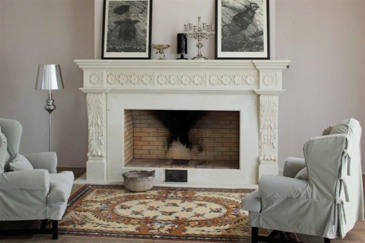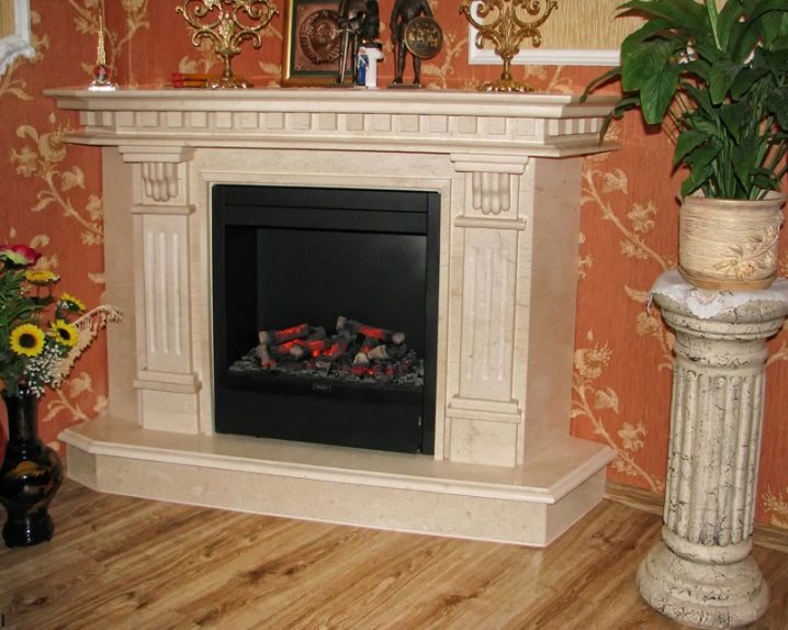 - Гипс. В дизайна на камините все повече доминират елементи под формата на колони, малки арки и мазилки. С правилния избор на цветове можете да създадете имитация на стари неща, като им придадете изтъркан или аристократичен вид.