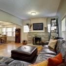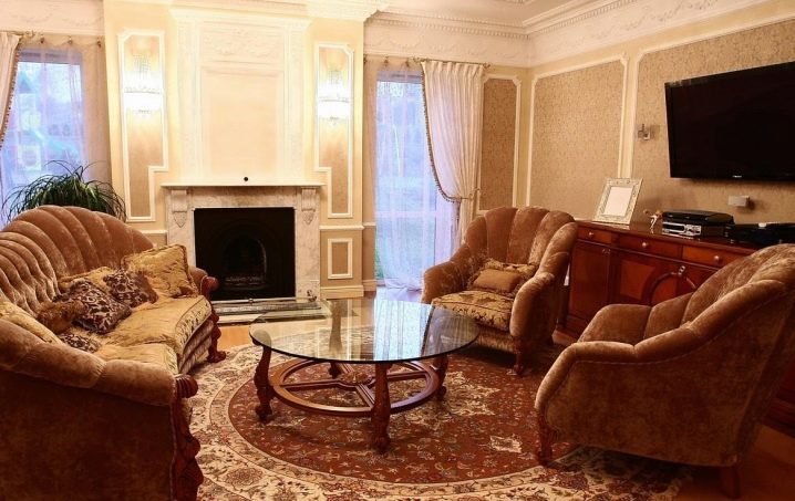 Ако стаята е достатъчно голяма, тогава е логично да разделите телевизора и камината, така че всеки да има своя собствена зона. Например, една трапезария е поставена близо до камината, а екранът е окачен на друга стена, ориентирайки меки дивани и фотьойли към нея. Порталът и телевизията на различни стени не спорят и изпълняват функциите си.