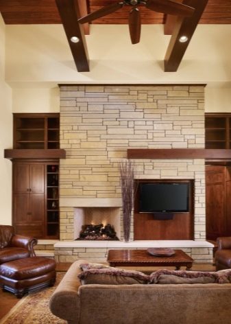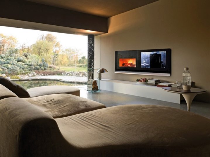 - Неудобно разположение на екрана. В познат интериор телевизорът е поставен на нивото на очите, за да направи седналия човек удобен. В стая с камина трябва да надградите върху размера на огнището, а мониторът е поставен доста високо. Когато гледате, трябва силно да повдигнете главата си или да се наведете назад.