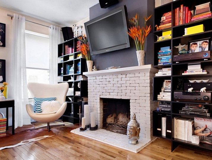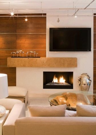 Тази най -опасна комбинация ще бъде практична, ако подходите разумно към въпроса: разрешете проблемите със сигурността. Ако камината е по -скоро като стойка за телевизор, тогава има две възможности: