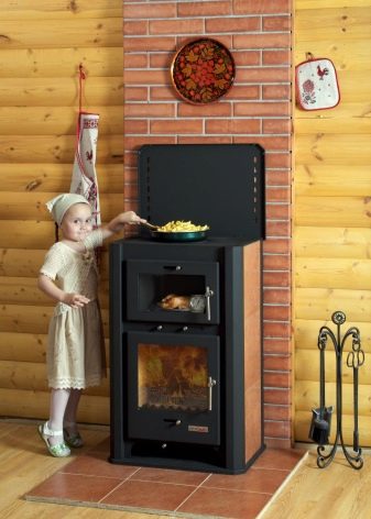Най -голямата площ на жилището, която този модел може да затопли, е 160 кубически метра. Размер на фурната: 640x1220x540 (в милиметри), оборудвана с готварска плоча, комин от 115 милиметра (диаметър), теглото на продукта е 85 килограма.