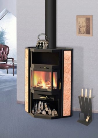 Ъгловата фурна на Бранденбург затопля добре стаята. Има стоманено крило и стъкло, устойчиви на топлина. Удобно е, че такова устройство е оборудвано с режим за пестене на гориво. Фурната тежи 156 килограма. Не забравяйте за това, когато организирате доставката на камината от магазина..