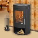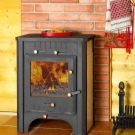 Печка – камина Angers производство на Konig Feuer (Ирландия). Камината е изработена от пластичен чугун и може да отоплява помещение до 80 кв.м. Такава печка работи на дърва, торфено гориво или въглищни брикети. Камината е оборудвана с топлоустойчиво стъкло и регулатор на въздуха, което улеснява контрола на процеса на горене.