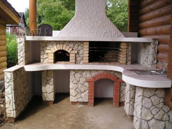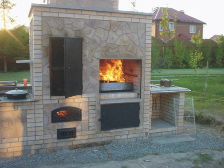 - Отделни улични сгради без покрив и наличие на качулка, подобни на обикновените барбекюта, но направени от тухли с предвидена ниша за дърва за огрев.