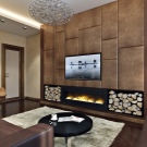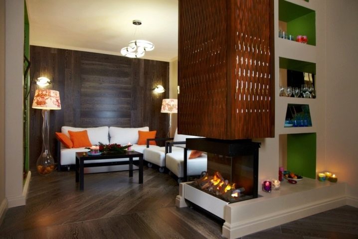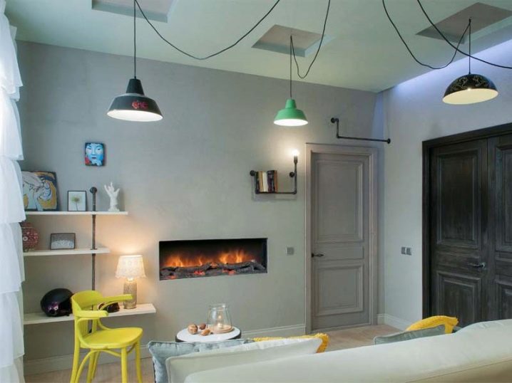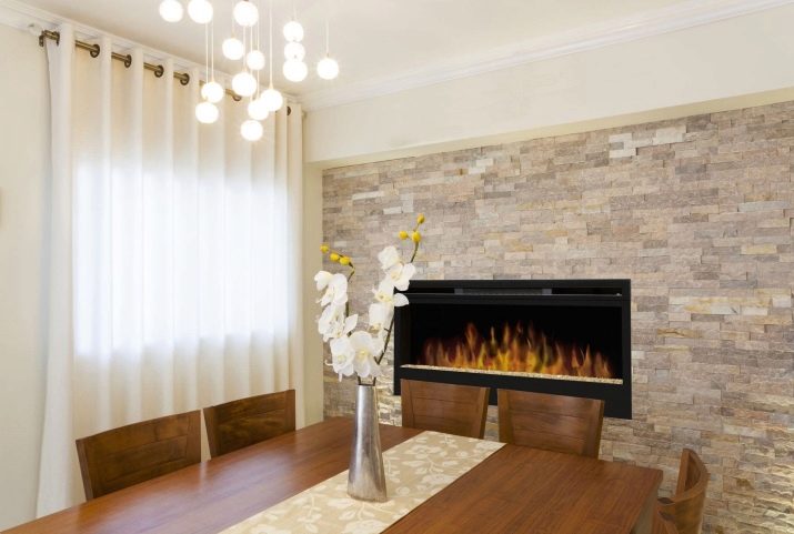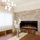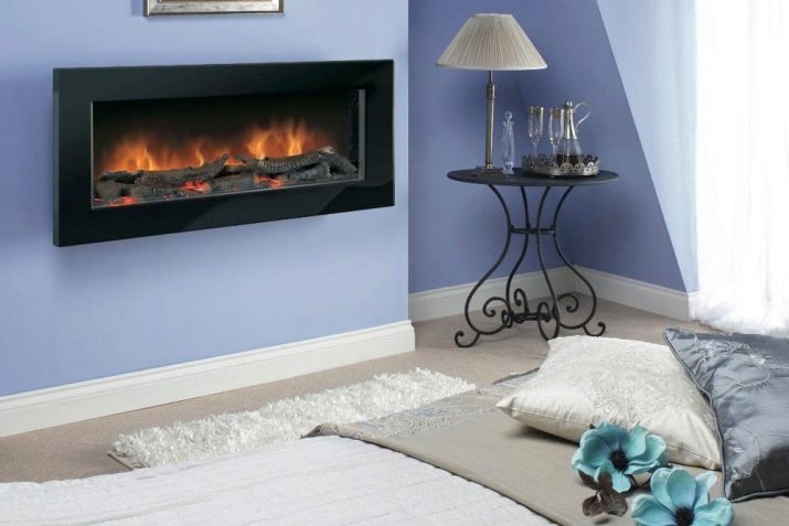 Електрическата версия е подходяща за градски апартамент, тъй като не изисква монтаж на комин. Стенните конструкции успешно украсяват цялостния декор на интериора. Най -често те са вградени в ниша или окачени над леглото. Такъв дизайнерски проект визуално практически не се различава от естествената камина..