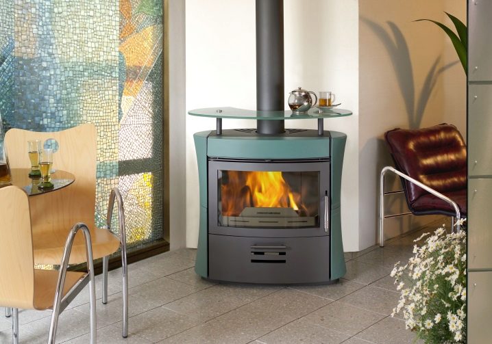 Има естетически вид. Можете да изберете облицовката от всяка цветова схема, а прозрачното стъкло ще ви позволи да се насладите на бушуващите езици на пламъка.