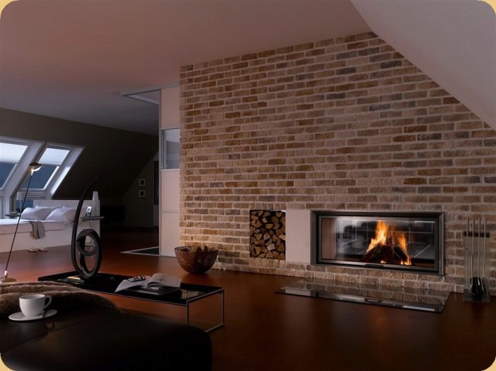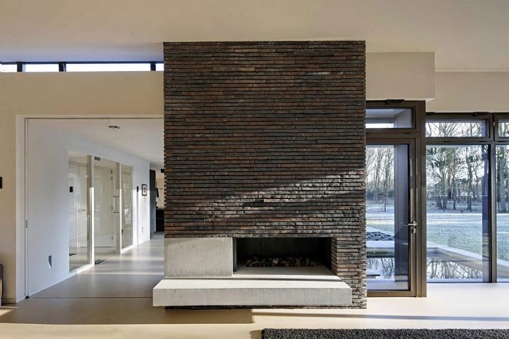 Облицовката осигурява предварително полагане на огнеупорни тухли. Този материал е ярък на цвят и гладък на допир, освен това много добре ще поддържа топлината в стаята..