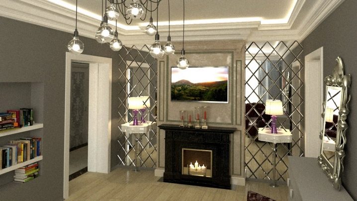 В допълнение, огледалните плочки се използват и за украса на фалшива камина. Огледалната повърхност на задната му стена ще отразява пламъка от свещи, поставени по протежение на имитационния портал на фалшивата камина, като по този начин създава ефекта на естествен огън на камината. И ако поставите портала на фалшивата камина с огледални плочки, отражението ще стане графично.
