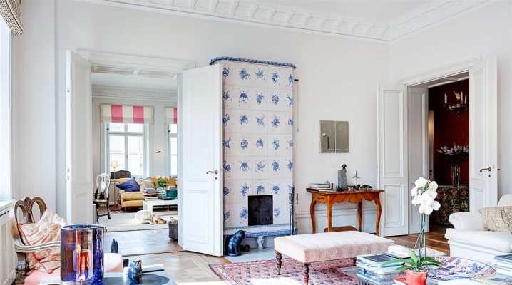 - Лаконизмът на класическия стил се подчертава най -добре от камини, декорирани с немски плочки, както и плочки без шарка..