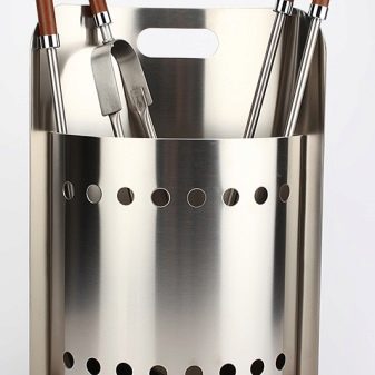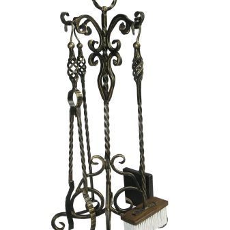 - Оригиналните комплекти за грижа за камината могат да бъдат направени в уникален стил (например под формата на рицари) и в допълнение към основния набор от инструменти включват голям брой допълнителни практически инструменти.