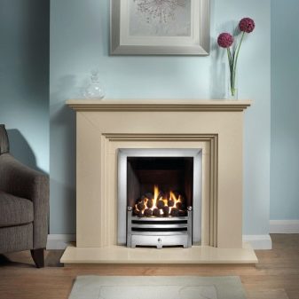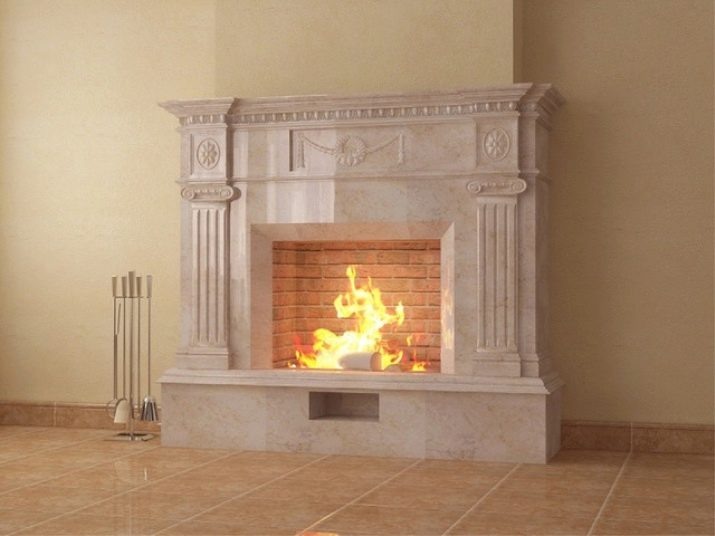 - Мраморните портали за камини са изработени от стъкло, така че можете да се насладите на зрелището на пламъци, избухнали върху трупи.