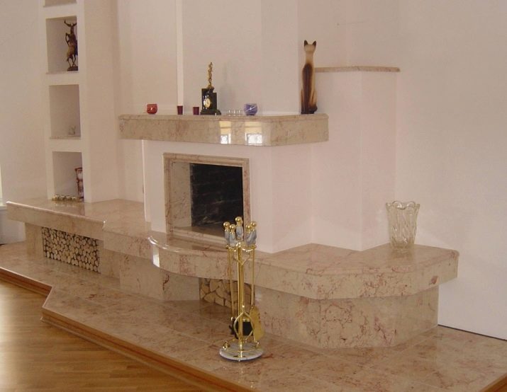 Най -популярният вид облицовка не само за самата камина, но и за нейния портал, са мраморни плочки..