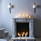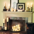 Можете да използвате свещници, свещници или просто да подредите големи свещи според вашия дизайн. Подчертаваме, че тази опция не е подходяща за всяка лека камина, тъй като пламъчните езици могат да оставят черна следа..