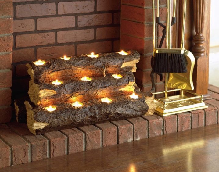 Има интересен начин за ефективно сервиране на свещи в камина. За да направите това, имате нужда от няколко средно чисти трупи. Във всяка изрязваме 2-3 вдлъбнатини с размер на малка свещ в метална стойка. Резултатът ще бъде изискана имитация на камина с минимална инвестиция на финанси и време..