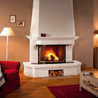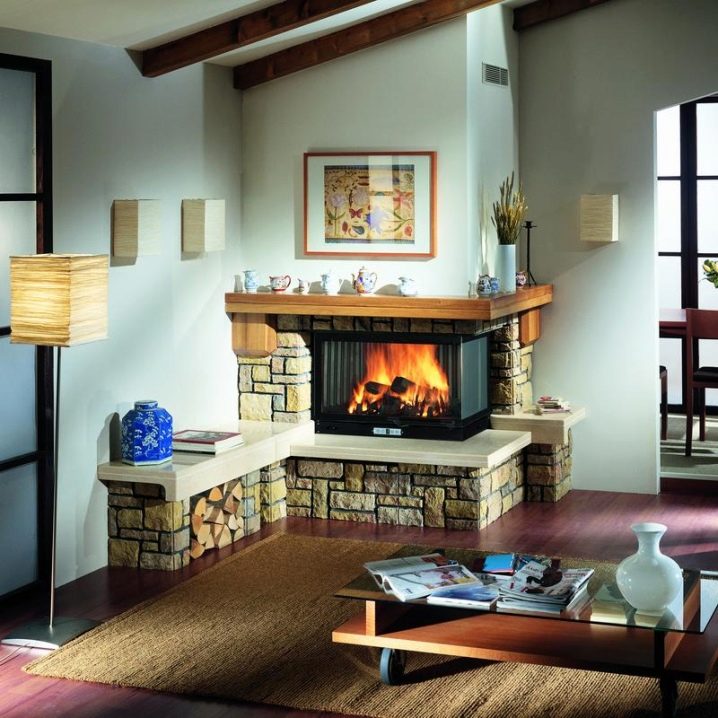 Но камината в ъгъла ще помогне да се спести не само място, но и пари за материали по време на нейното изграждане..